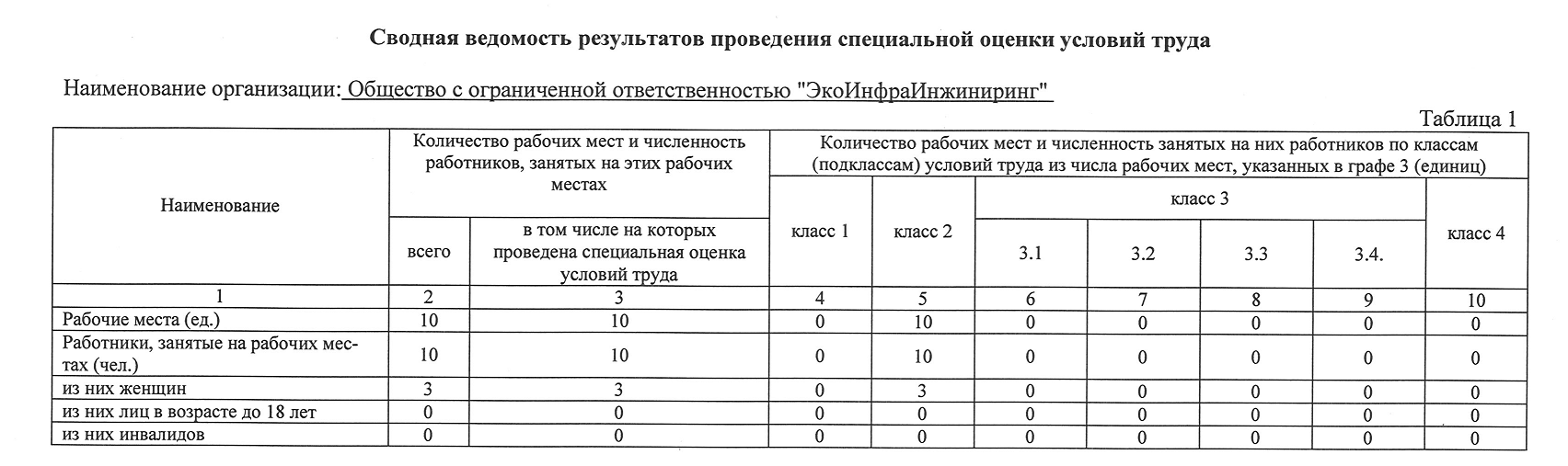 Проведена специальная оценка условий труда на 10 рабочих местах компании, установлен 2 класс условий труда на всех рабочих местах